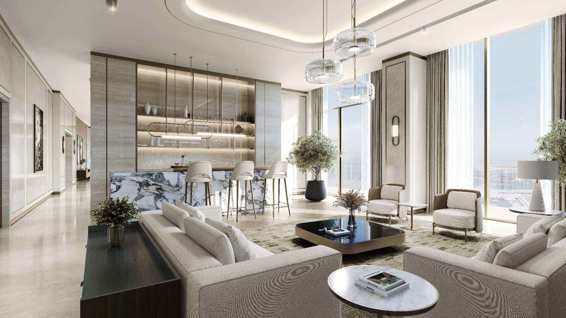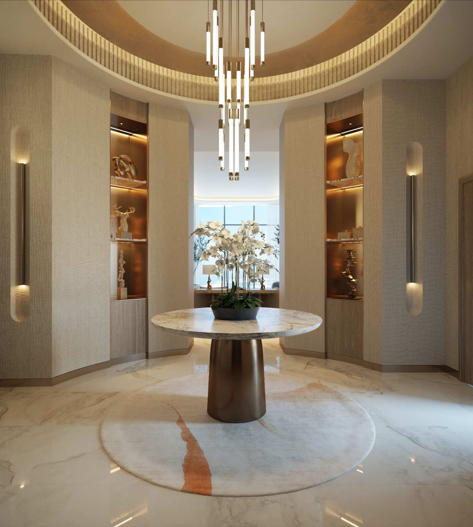The architecture is inspired by luxury yachts, wind, and the ocean, with ultra-contemporary style and nautical lines. Interiors feature premium porcelain, timber, and marble finishes, with 3-meter living area heights and floor-to-ceiling glass walls